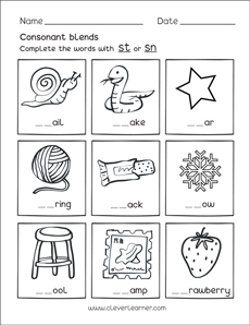 Consonant Blends With S (sn, sc, sk, sl, sw, sp, st, sq)
