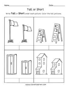 Tall or Short Measurement Worksheets for children Tall or Short Activities Basic MathBigger or Smaller Count And Write Dominos Graph and Chart Greater / Less Than More or Less Skip Numbers Tallying Units Measurement Tall or Short Which is taller and which is shorter preschool activity worksheet.